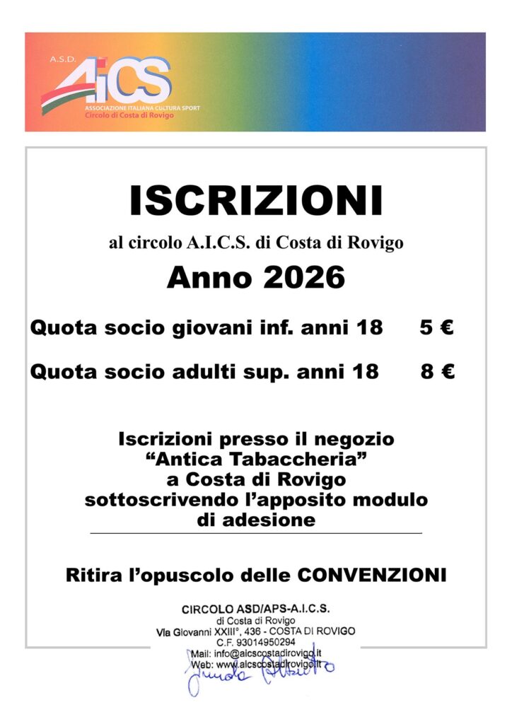 A partire dal 2026 le tessere di iscrizione o di rinnovo hanno durata di 365 giorni dalla data di rilascio. Le tessere associative vengono distinte tra adulti e ragazzi. Il loro costo è di euro 8 per gli adulti e euro 5 per la categoria giovani fino ai 18 anni. In ogni caso deve essere compilata preventivamente la domanda di iscrizione o rinnovo annuale.